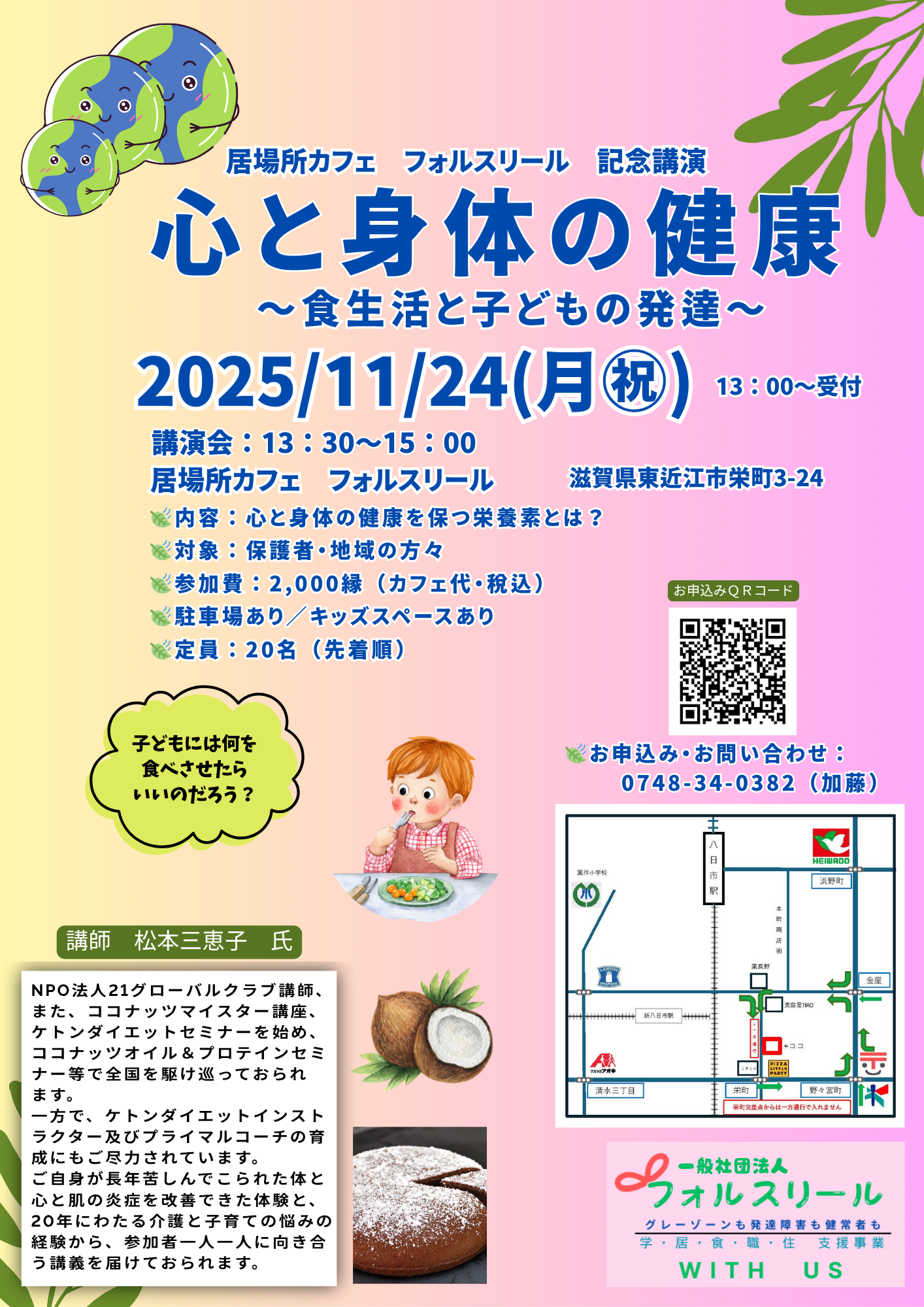 八日市本部/近江八幡教室 10:00〜20:30 カフェフォルスリール 11:00~14:00/16:00~20:30 |